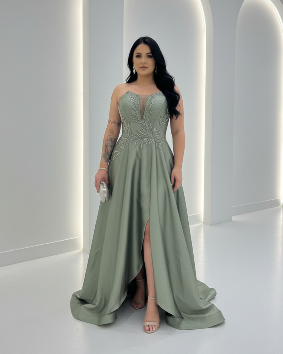 O vestido Anita Oliva é uma opção sofisticada para madrinhas, combinando a elegância do semi bordado com a sensualidade discreta... Ler mais