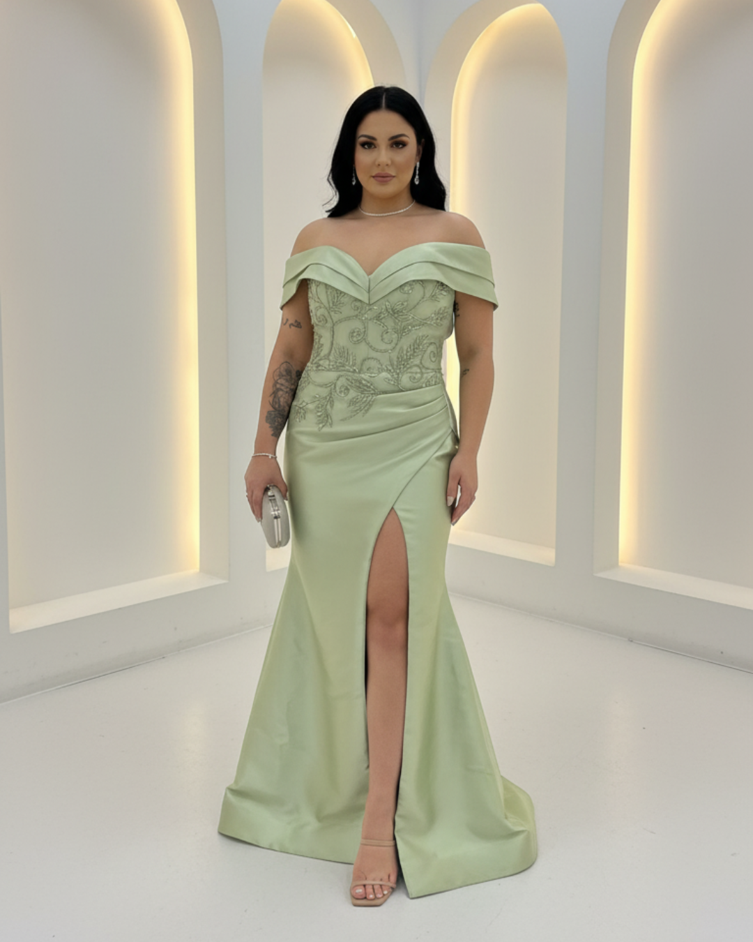 Este vestido verde Castelli combina elegância e estilo com seu design ombro a ombro que valoriza a silhueta. O semi... Ler mais
