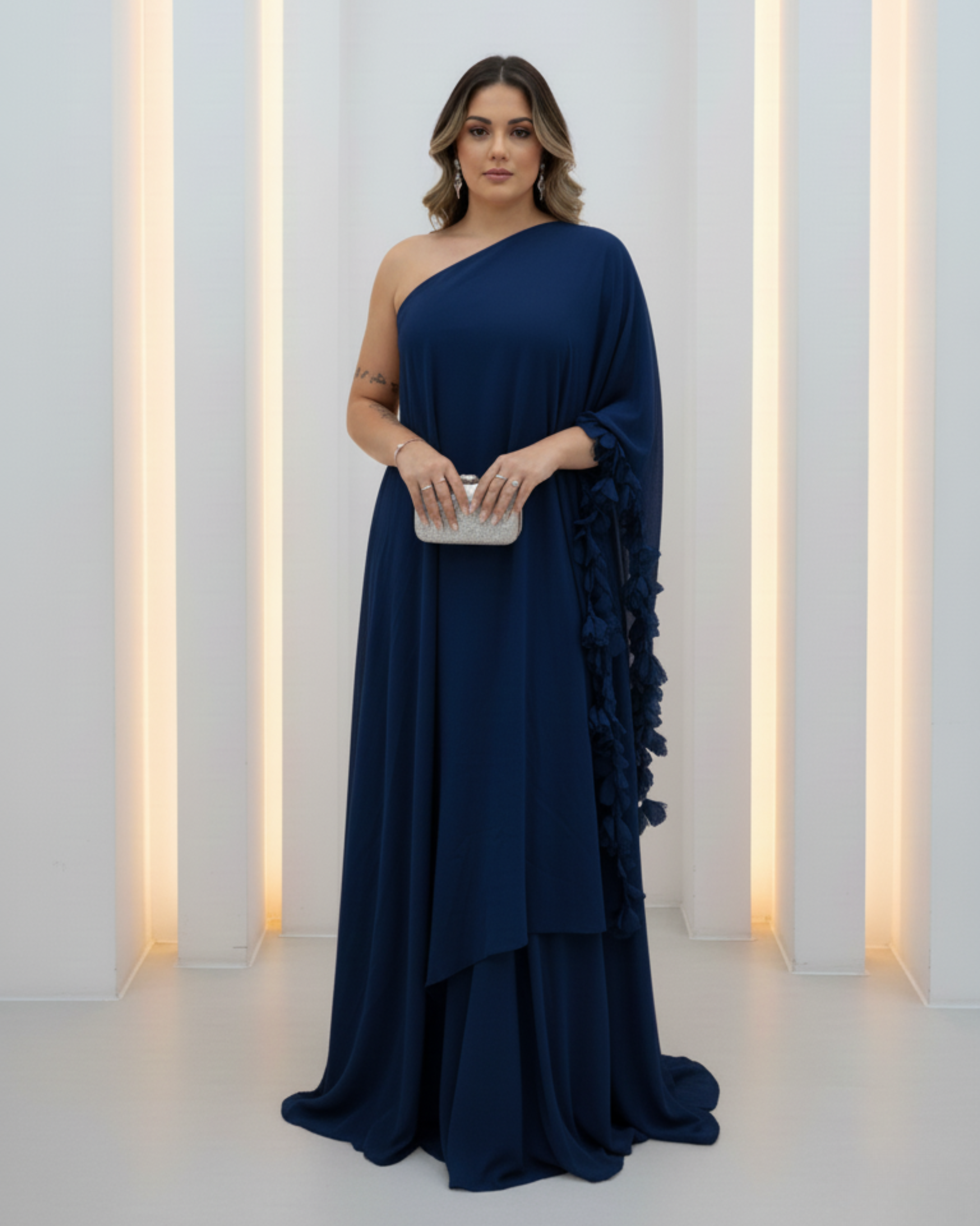 O vestido Ivy Azul Marinho apresenta um design fluido e elegante com um ombro só, proporcionando uma silhueta sofisticada e... Ler mais